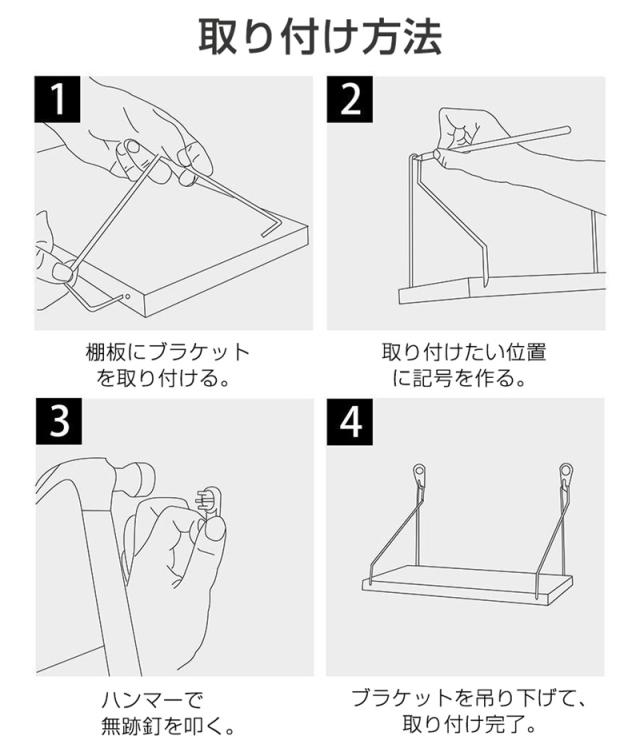 - 家族のハンドメイド作品を飾る棚を色々探して、シンプルなデザインのこちらを購入しました。板の水平をとるのが少し難しいかと思いましたが素人でもできました。壁を傷付けにくい無痕釘も何回か叩くだけで簡単にしっ...