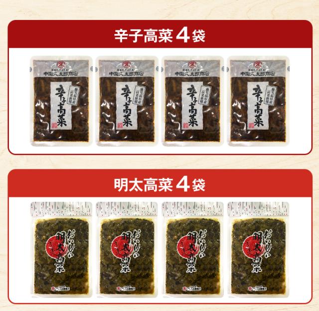 辛子高菜 選べる4袋 明太高菜 高菜油あえ お試し 送料無料 食品 博多 福岡 九州産 帰省土産 旅行土産 おかず たかな 明太子 入り 高菜 ご飯のお供 おつまみ お土産 ギフト ポイント消化 名産品 [メール便]