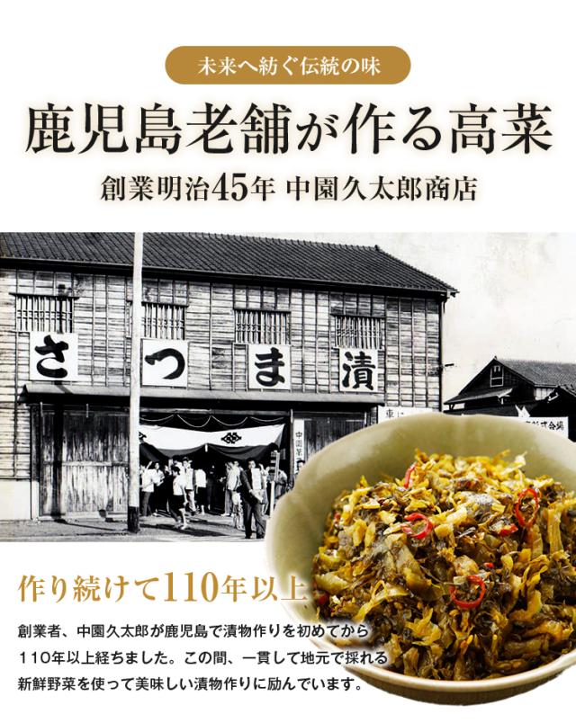 ■原材料名:たかな、漬け原材料(しょうゆ、砂糖、植物油、ごま、食塩、唐辛子)/調味料(アミノ酸等)、着色料(うこん)、酸味料、(一部に小麦・大豆・ごまを含む)
