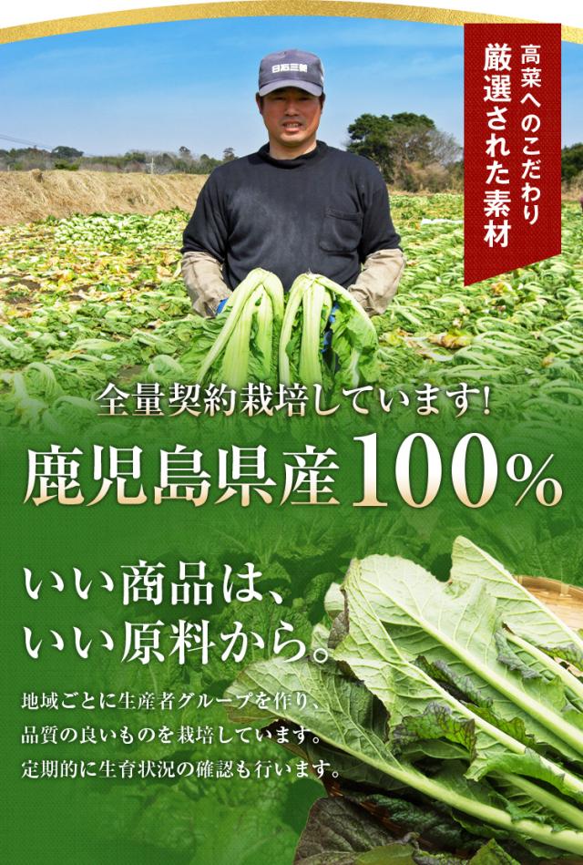 ■原材料名:たかな(鹿児島県)、植物油、食塩、唐辛子/調味料(アミノ酸)、着色料(うこん)、酸味料、(一部に大豆を含む)