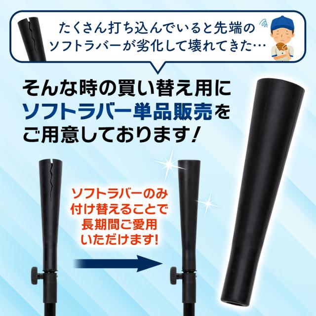 【存在感を感じにくいソフトラバー採用】先端はバッティングの際に存在を感じにくいソフトラバーを採用。ボールを実際に打ったようなリアルな感触が得られます。また軟球・硬球はもちろん練習用ボールにも対応!直径5cm以上ならばどんなボールでもご利用いただけます。