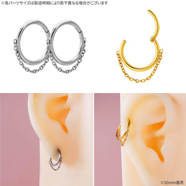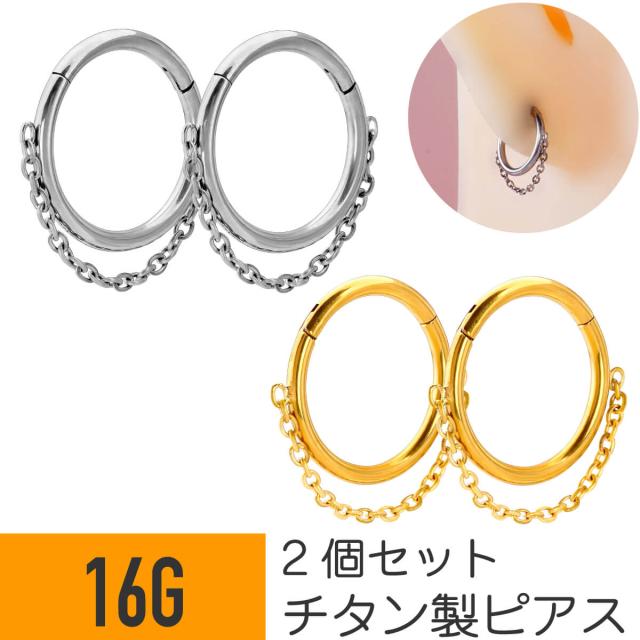 2個セット チタン チェーン ワンタッチ セグメント リング 16G ヘリックス 軟骨ピアス ボディピアス フープ キャッチレス 着脱簡単