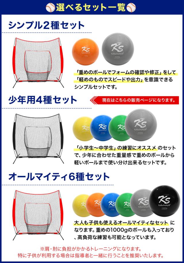 【野球ネット】と【野球トレーニングボール4種】で小学生〜中学生の練習におすすめのセットです!重たいボールで球速とコントロール力UP!