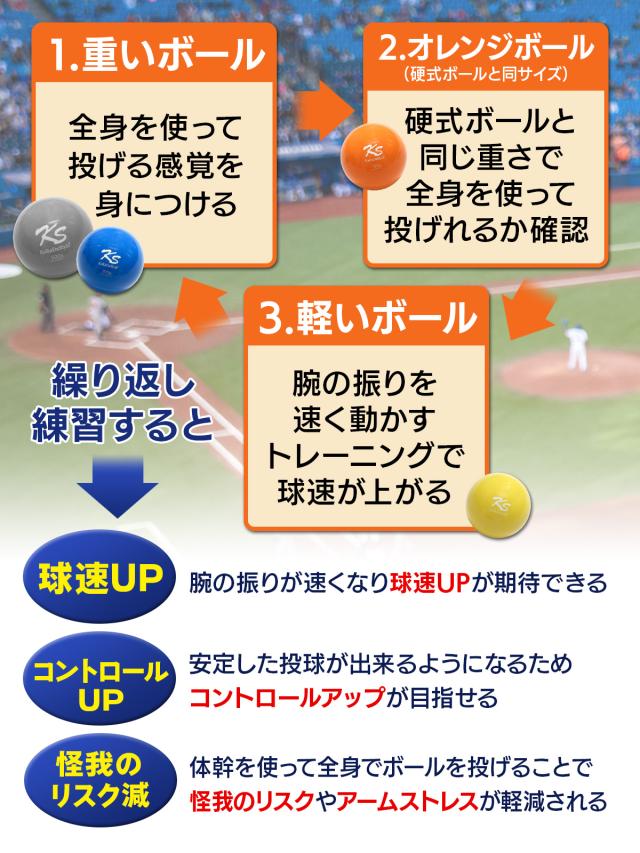【安定したフォームでコントロールアップ】全身を使って投げる感覚が身に付けば安定した投球が出来るようになるため、コントロールアップが目指せます。投手だけでなく、的確に球を送りたい外野にもオススメです。