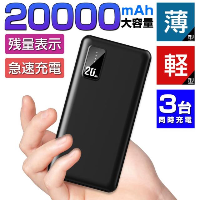 大容量モバイルバッテリー 軽量 薄型 20000mAh 3台同時充電 PSE 5v/2a スマホ携帯充電器 USB-A+Type-C入出力ポート