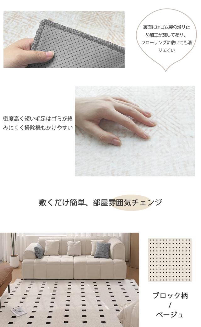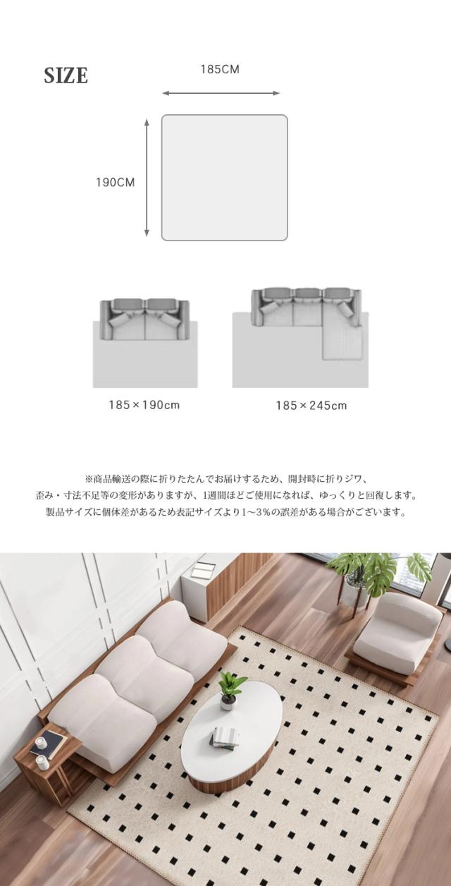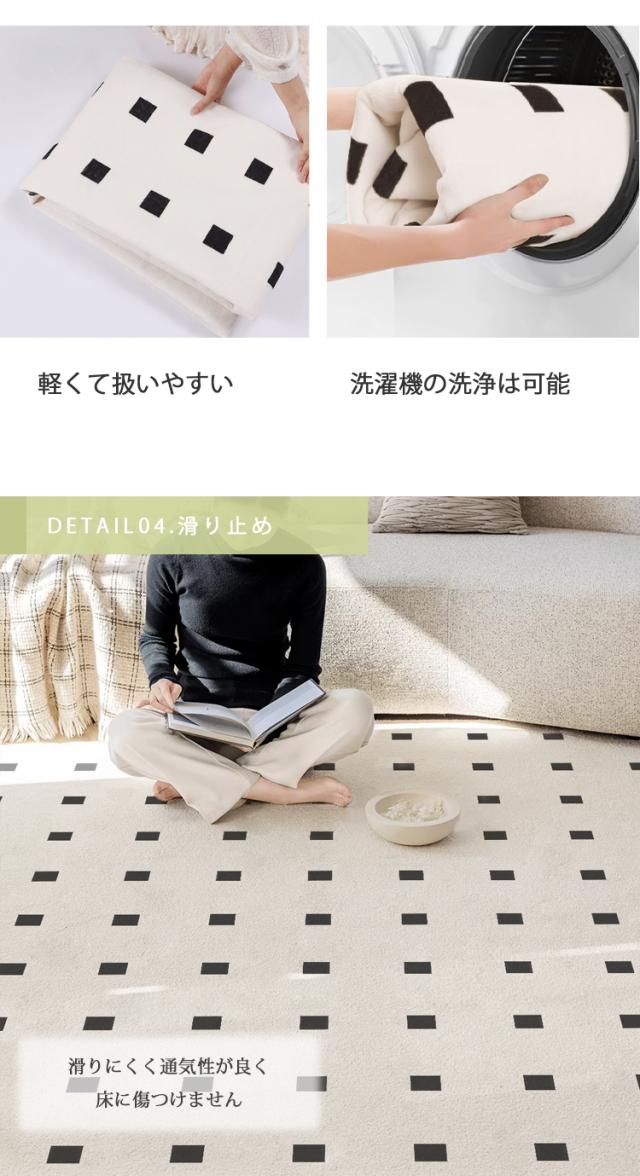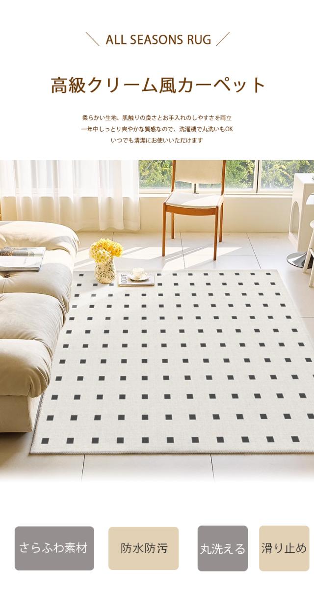 カーペット クリーム ラグ 洗える オールシーズン 185×190 2畳用 北欧 防水防汚 滑り止め付 ホットカーペット対応 床暖房対応 夏 冬 マット ラグマット