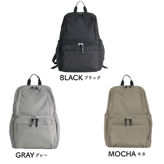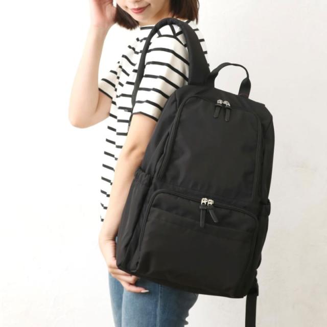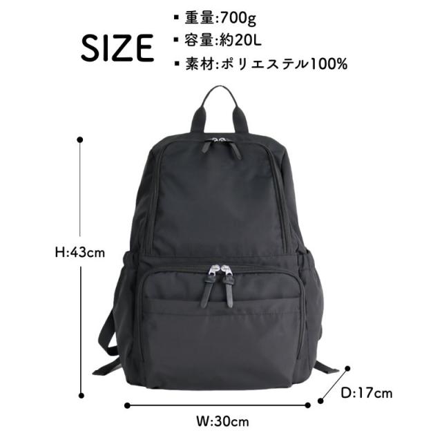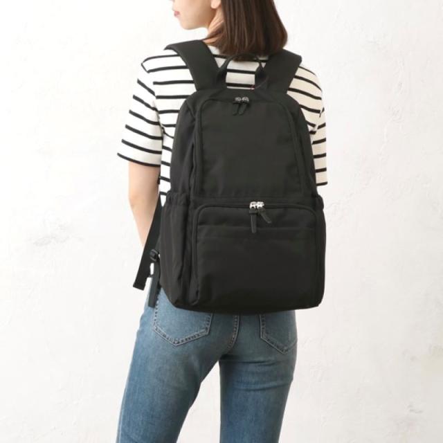 | ポケット | 【外側】 フロント:ボタン付きポケット×1、フロント:ファスナーポケット×1(内側にオープンポケット×3)サイド:ギャザーポケット×2、底側:防水ポケット×1、ショルダー部分:ファスナーポケット×1、背面:ファスナーポケット×1 【内側】ファスナーポケット×1、オープンポケット×2、ギャザーポケット×3、メッシュポケット×1 |