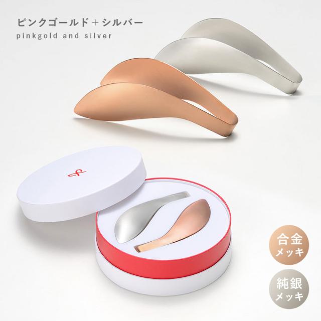 カラーは、ゴールド(純金メッキ)、とシルバー(純銀メッキ)のセット、ピンクゴールド(合金メッキ)とシルバー(純銀メッキ)のセットよりお選びいただけます。