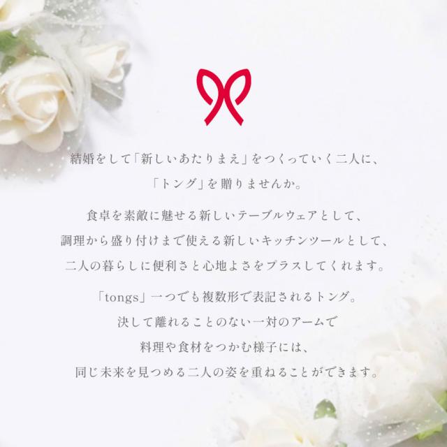 結婚をして「新しいあたりまえ」 をつくっていく二人に、「トング」を贈りませんか。食卓を素敵に魅せる新しいテーブルウェアとして、