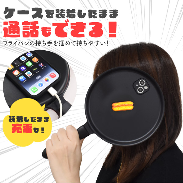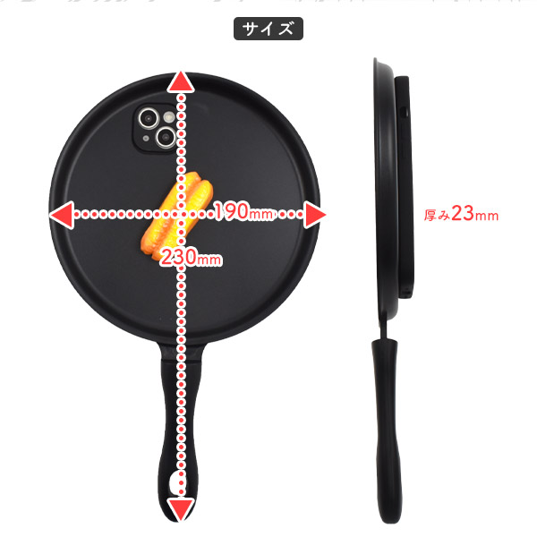 スマホケース iPhone14用 でかスマホケース ホットドッグ&フライパン 携帯ケース 食品サンプル風 おもしろ 背面保護カバー スマホカバー 個性的 バックカバー ユニーク 個性的 小道具 ケータイケース iPhoneケース 背面保護 撮影 写真映え カジュアル SoftBank au docomo