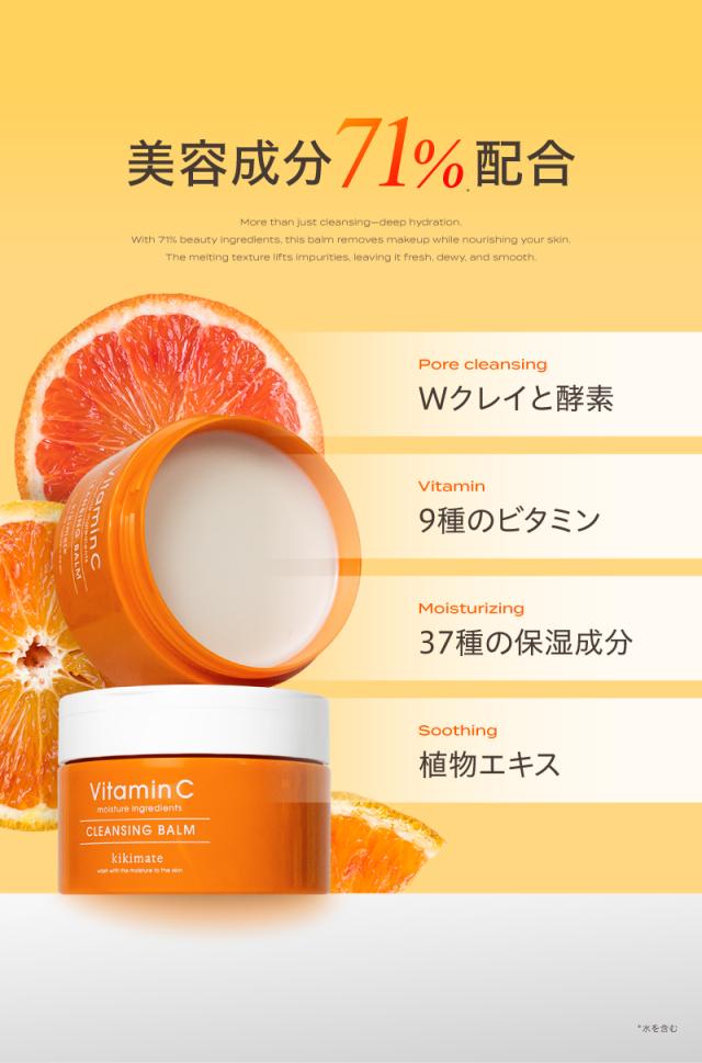 クレンジングバーム メイク落とし 化粧落とし ビタミンC まつエクOK W洗顔不要 しっとり高保湿 毛穴ケア 90g ナイアシンアミド 低刺激 毛穴クレンジング 乾燥肌 敏感肌 ウォータープルーフ kikimate 送料無料 プレゼント ギフト