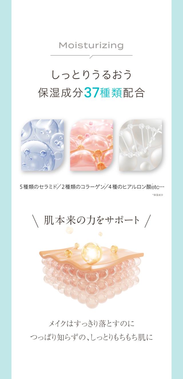 温でとろけるようになじむバームが、しっかりメイクや毛穴汚れをするっと落とします。 [美容成分71%*配合]でスキンケア発想のモイストクレンジングバーム。 保湿に特化した[4種のヒアルロン酸*・2種のコラーゲン*・5種のセラミド*]を配合。洗うたび、うるおいたっぷりのお肌へ (※水を含む ※保湿成分)