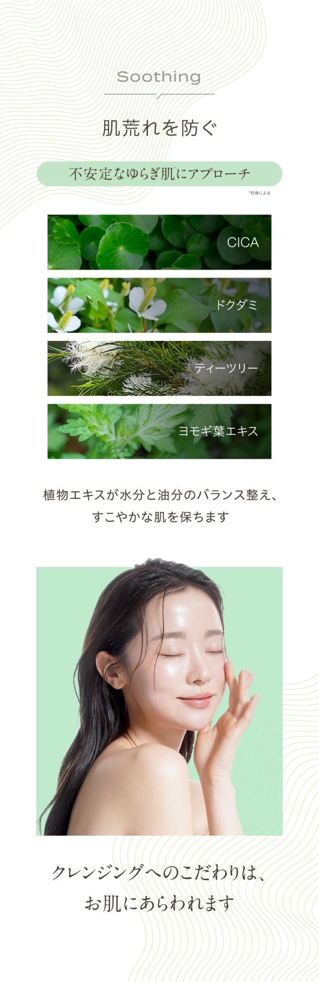 「ナイアシンアミド*・パンテノール*を含むビタミン9種」+「CICA *・ドクダミ*・ティーツリー*」お肌に嬉しい成分がたっぷり。 毛穴ケアしながらもっちりハリのある透明肌へ (※乾燥による ※保湿成分)
