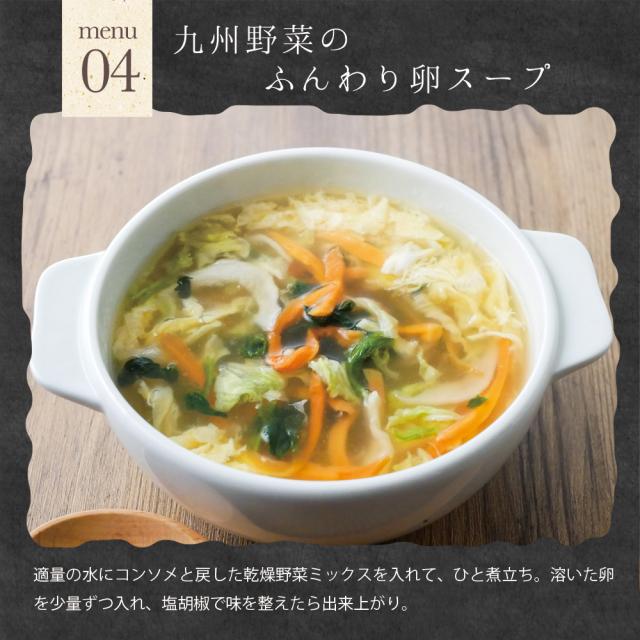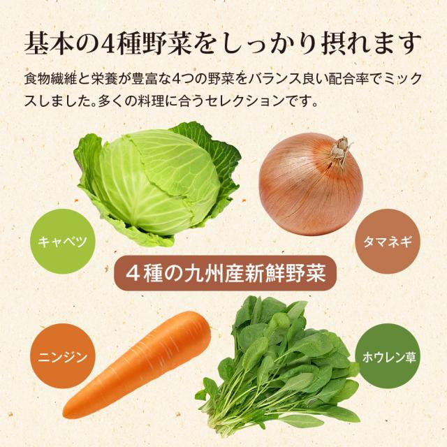 キャベツ(九州産)、にんじん(国産)、ほうれん草(九州産)、玉ねぎ(九州産)、ブドウ糖
