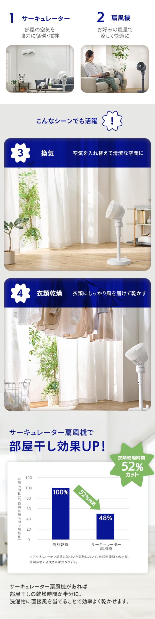 扇風機、サーキュレーター、衣類乾燥、換気。