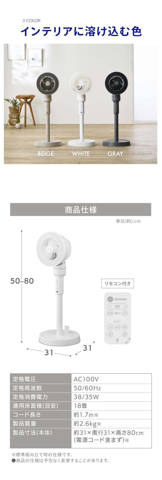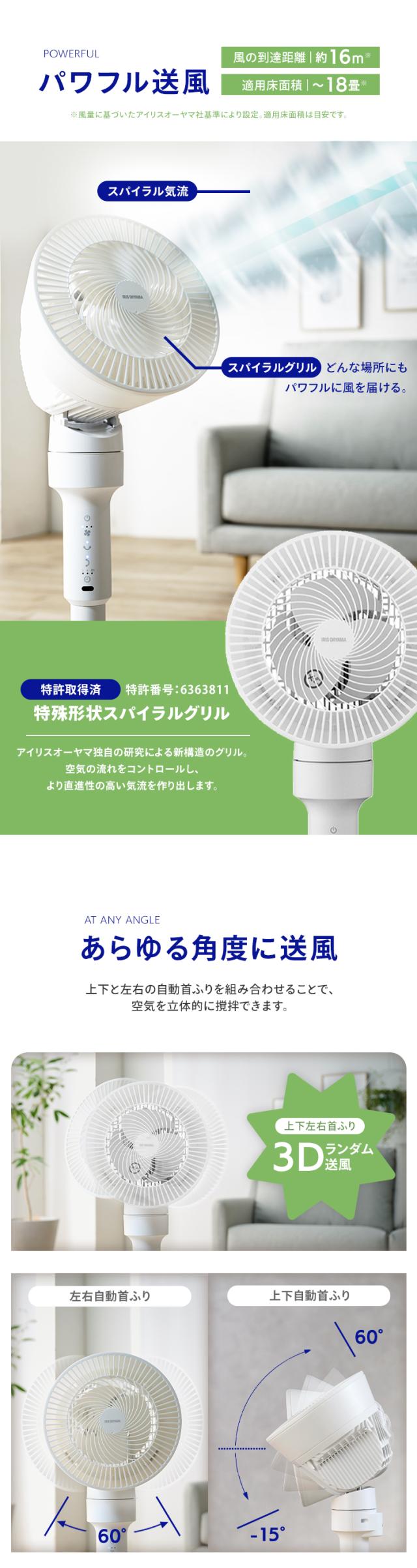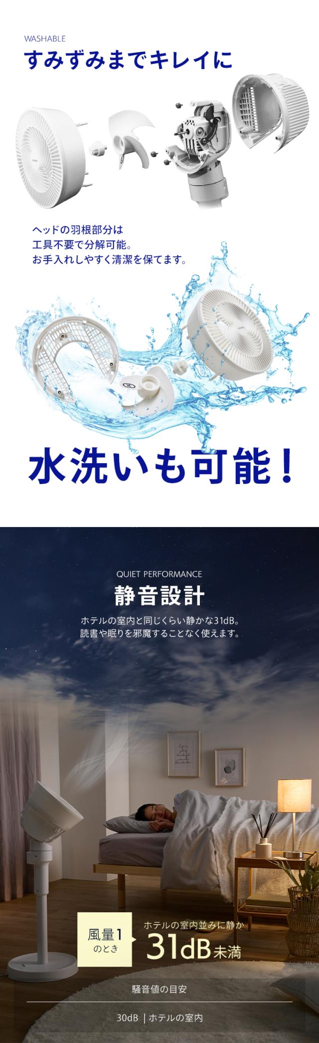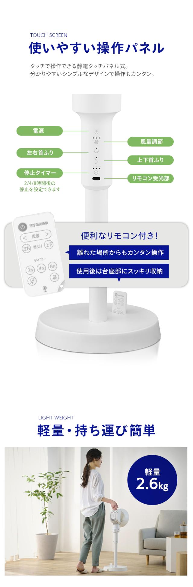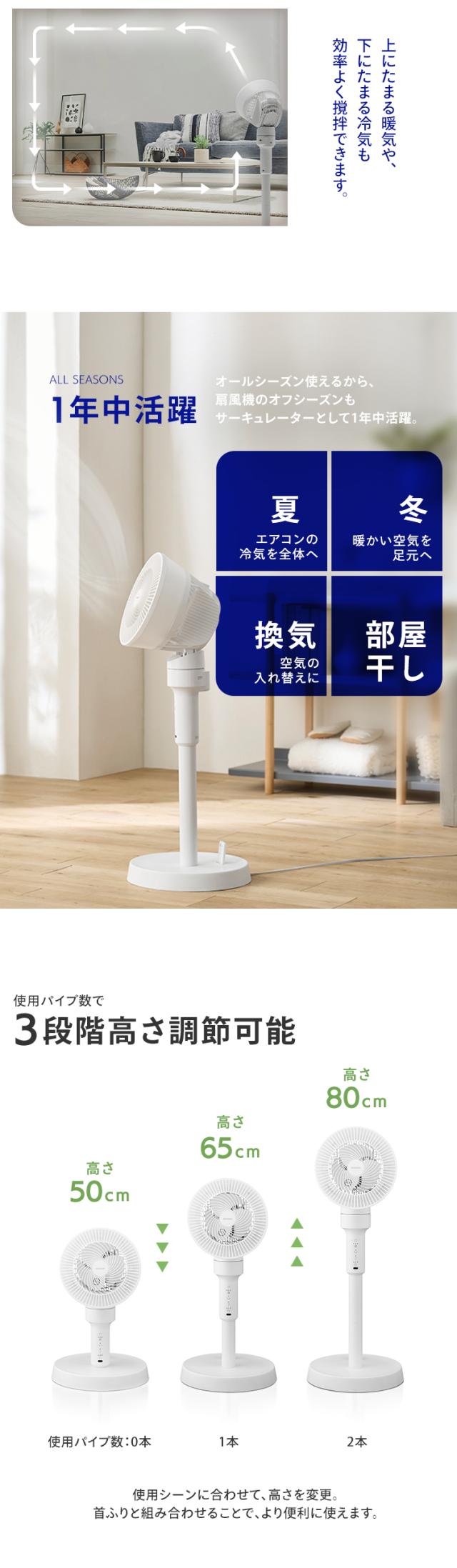 - 首振りの他に上下の運転可能なので上空や床付近の熱も 循環してくれます。 タイマーやライトもついています。 首の長さも変えられるので買って良かったです。