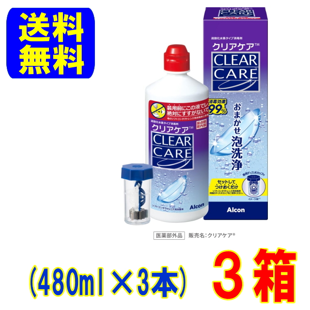 日本アルコン クリアケア【480ml】3本 送料無料 中和用ディスク付き ディスポカップ付き ソフトコンタクトレンズ ケア用品 消毒液洗浄液