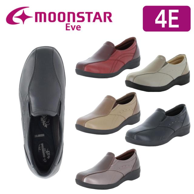 送料無料 ムーンスター イブ レディース コンフォート シューズ EVE 196 レッドコンビ パールオークコンビ オークコンビ メタリックセピアコンビ ブラック 幅広4E スニーカー 軽量 靴