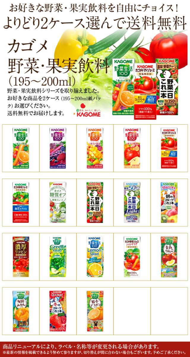 ポイント5倍 選べる カゴメ 野菜 果実飲料 よりどりMIX 195〜200ml 紙パック 48本 (24本×2箱) よりどり2ケース 送料無料