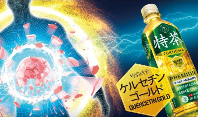 サントリー特茶シリーズの、伊右衛門 特茶 TOKUCHA、特茶 TOKUCHA ほうじ茶、特茶 TOKUCHA ジャスミンが進化しました!特別成分「ケルセチンゴールド※」を配合。トクホ飲料史上で初めて脂肪の分解に着目した、体脂肪を減らすのを助ける特定保健用食品です。