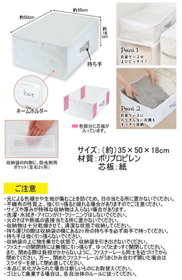 MSC すきま収納 衣類用 85692 収納袋 収納ボックス すき間収納 クローゼット 押入れ 衣類 不織布 通気性 ホワイト