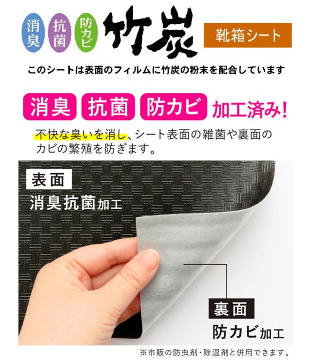 BCS 竹炭 靴箱シート 54261 日本製 防カビ 抗菌シート 湿気 汚れ防止 消臭 タンス 流し台 カット可能 ブラック