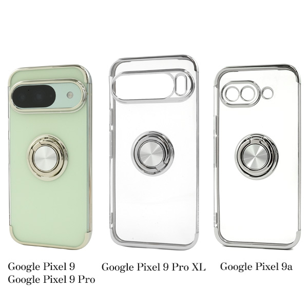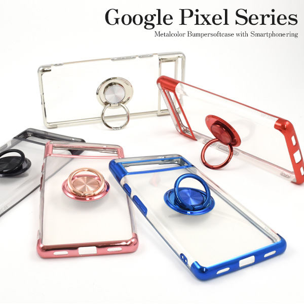 スマホケース Google Pixel 5〜9a スマホリング付き メタルカラー バンパー ソフトクリアケース 透明ケース 無地 TPU素材 光沢 つや有り 柔らかい グーグルピクセル カバー GooglePixel 保護 シンプル スタンド ぐーぐるぴくせる Google Pixel9pro 9a 8a 8pro