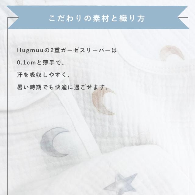 Hugmuuの2重ガーゼスリーパーは0.1cmと薄手で、暑い時期も快適に着用できます。