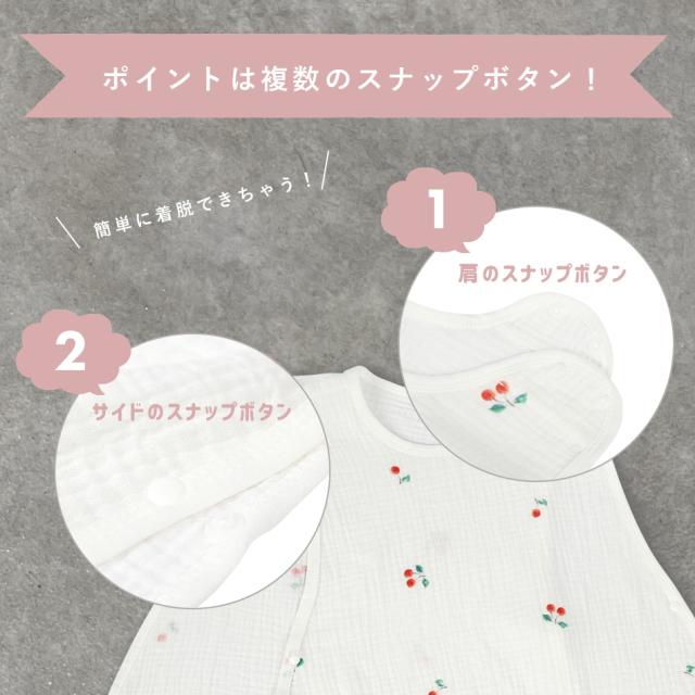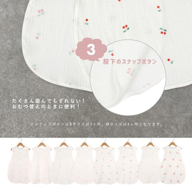 スリーパー 2重ガーゼ コットン ベスト 袖なし 足まですっぽり かわいい 月 星 さくらんぼ レモン くま 恐竜 春 夏 秋 1年中 赤ちゃん ベビー Hugmuu ハグムー