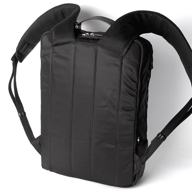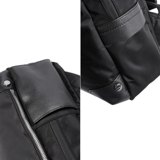 本体には環境に優しいリサイクルナイロンを採用し、耐久性とエコフレンドリーな特性を兼ね備えています。また、付属の革素材は高級感と、品質の高さを感じさせます。