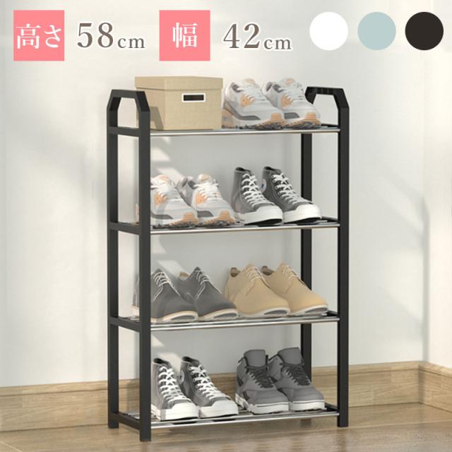 簡易シューズラック 4段 1サイズ スリム 靴 省スペース くつ 下駄箱 シューズボックス シューズケース 靴箱 玄関 オシャレ 収納 整理 一人暮らし 薄型 ホワイト ブラック スニーカー ブーツ サンダル 靴ラック 片付け コンパクト 整理整頓