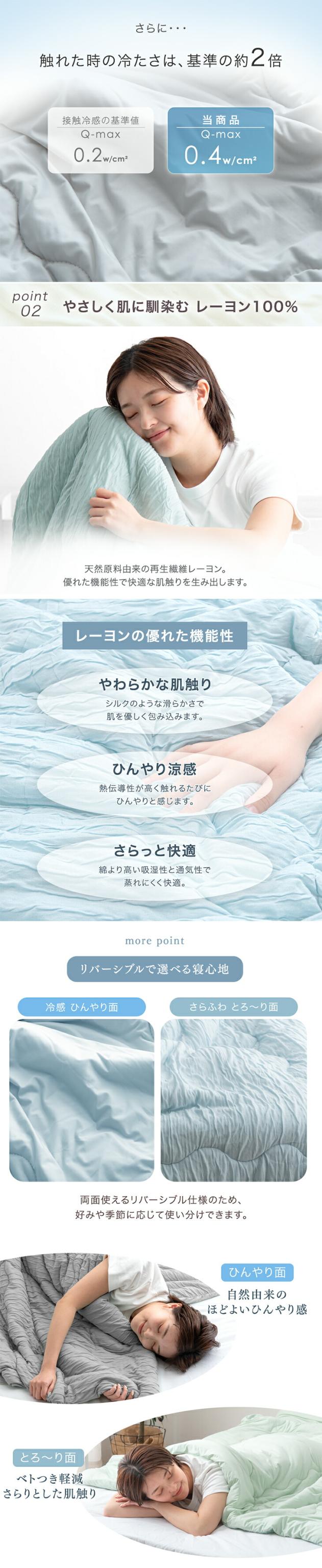 洗える肌掛け布団 接触冷感 リバーシブルケット ひんやり とろける シングルロング ウォッシャブル ブルー グリーン ピンク アイボリー グレー 夏用 ギフト