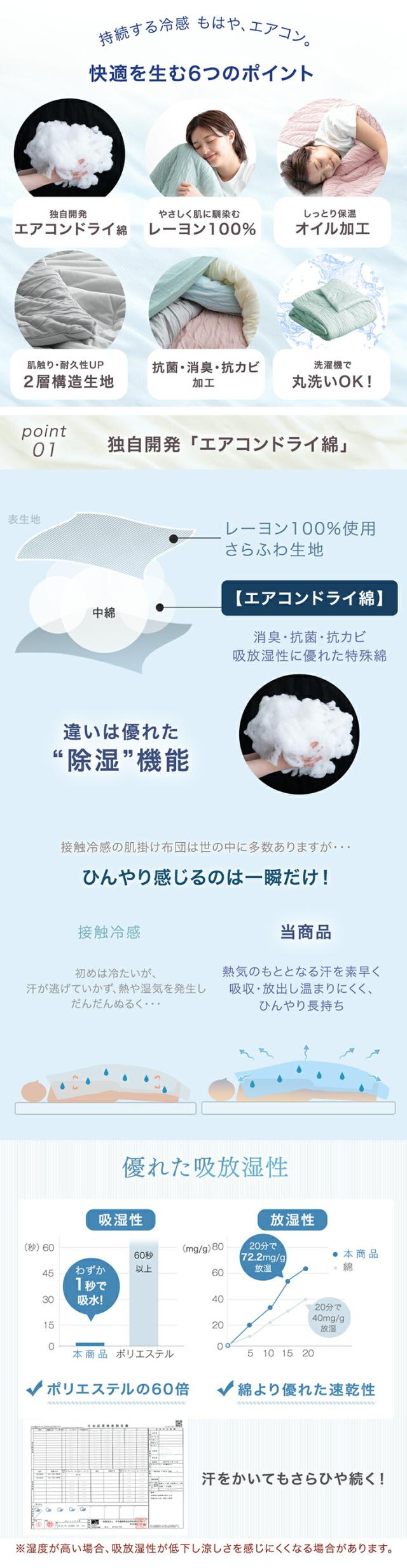 ・接触冷感+吸放湿でさわやかな寝心地続く!