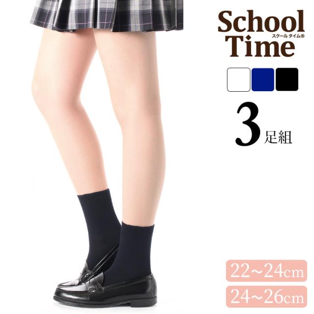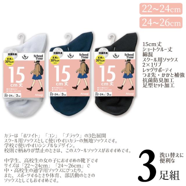 スクールソックス アツギ new スクールタイム 15cm丈 リブ編み LS70083 3足組 ショートクルー丈 子供靴下 学生靴下 キッズ ジュニア 学校 無地 白 紺 黒 アツギ ソックス 女児 女の子 抗菌防臭 atsugi 22cm 23cm 24cm 25cm 26cm(06139)