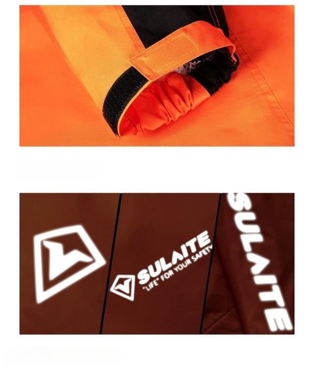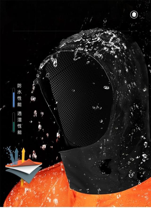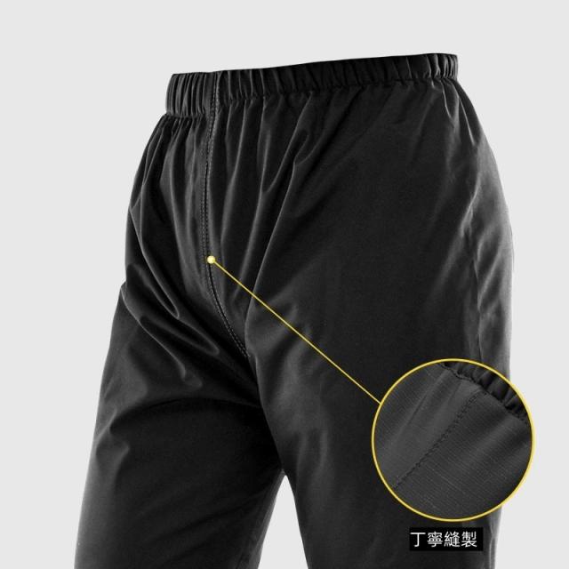 【耐水/防水性能】前面のファスナー部分は、ファスナーとボタンで閉じる三重構造。袖先部分はゴムギャザー加工で二重になっており、雨風の侵入を防ぎながら、袖が捲くり上がるのを防ぎます。上着両サイドのポケットは蓋付きで雨の侵入を防ぎます。