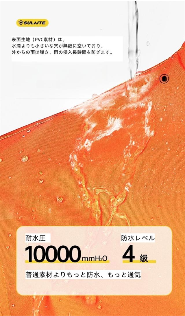 【用途】様々なレインシーンに対応!汚れの付きにくい撥水加工が施されているため、通勤/通学/自転車/バイクなどの日常使いはもちろん、キャンプや釣り、ハイキングなどのアウトドアまで幅広くご使用いただけます。梅雨シーズンの豪雨/台風対策などでも活躍間違いなしです!