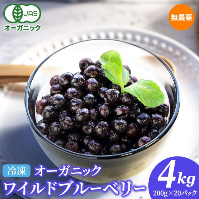 冷凍 オーガニック ワイルド ブルーベリー4kg(200g×20パック) 無農薬 業務用 有機JAS認証 野生種 大容量 お徳用 メガ盛り フルーツ 果物 おやつ お菓子 ポリフェノール 送料無料
