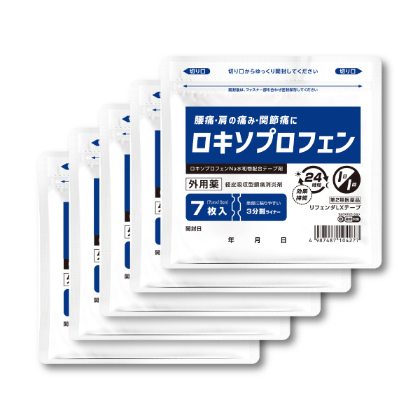 【湿布】【第2類医薬品】『ロキソプロフェン リフェンダLXテープ レギュラー判 7枚入 5個セット』(小さいサイズ)
