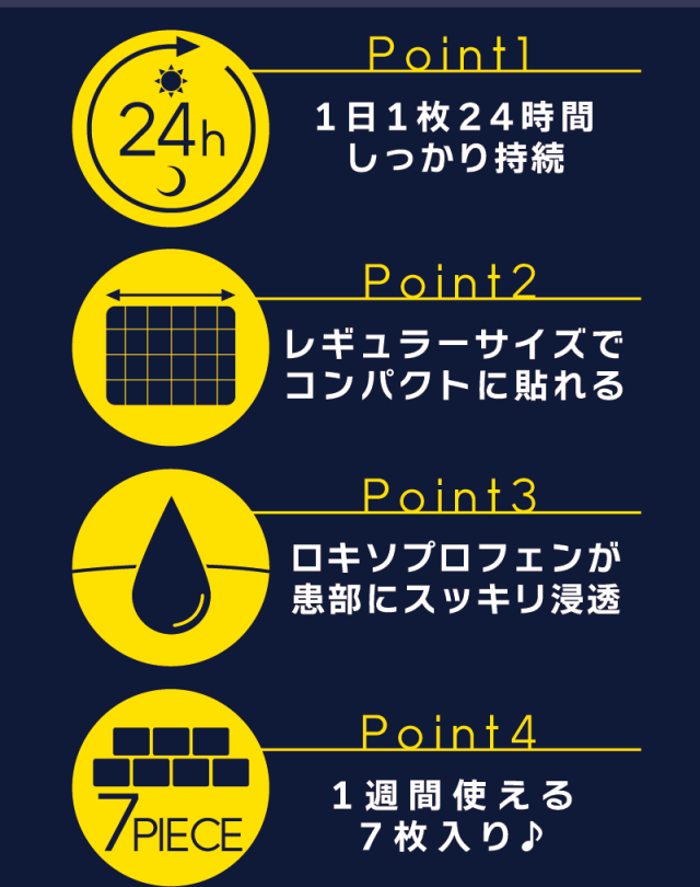 表面のライナー(フィルム)をはがし、1日1回患部に貼付してください。