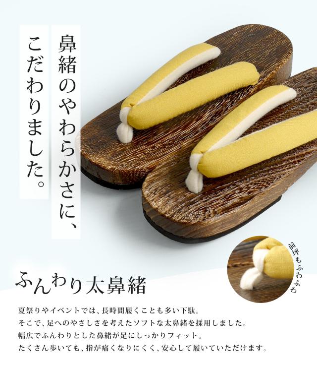 軽量台とふんわり鼻緒で足が痛くなりにくいレディース下駄です。