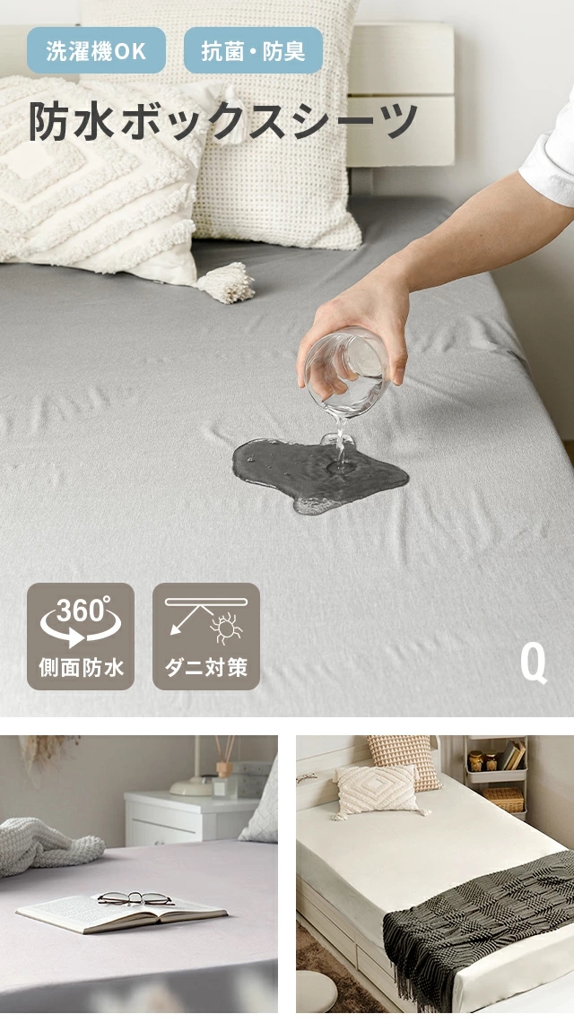 寝汗など水分の染み込みを防ぐ防水ボックスシーツ。