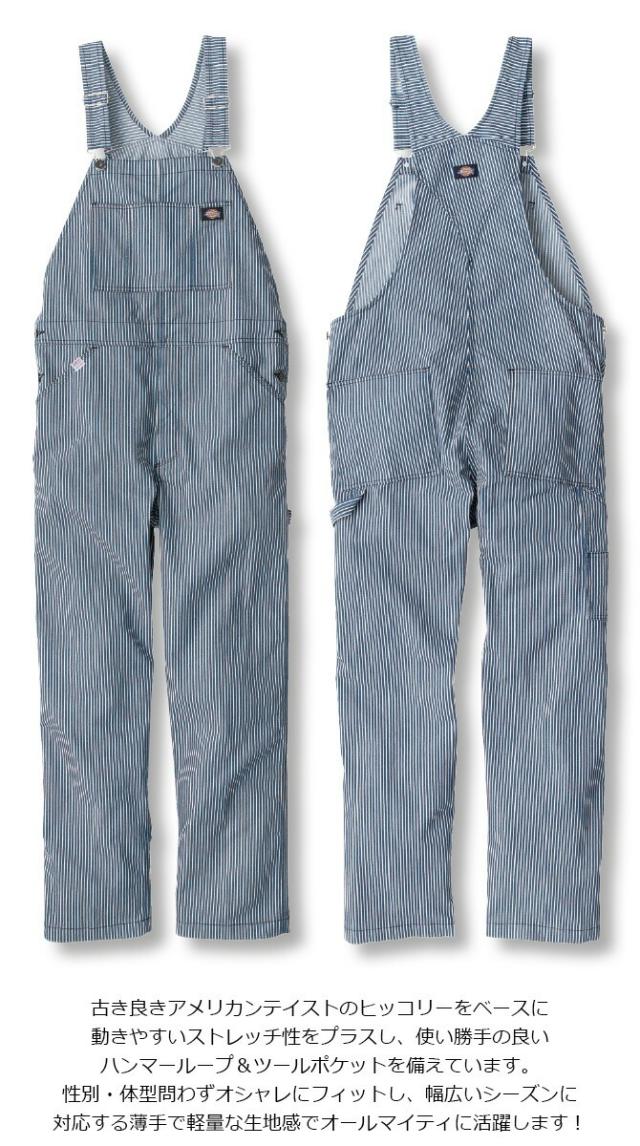 アメリカを代表するワークカジュアルブランド「Dickies (ディッキーズ)」のライトストレッチ ヒッコリー オーバーオールです。