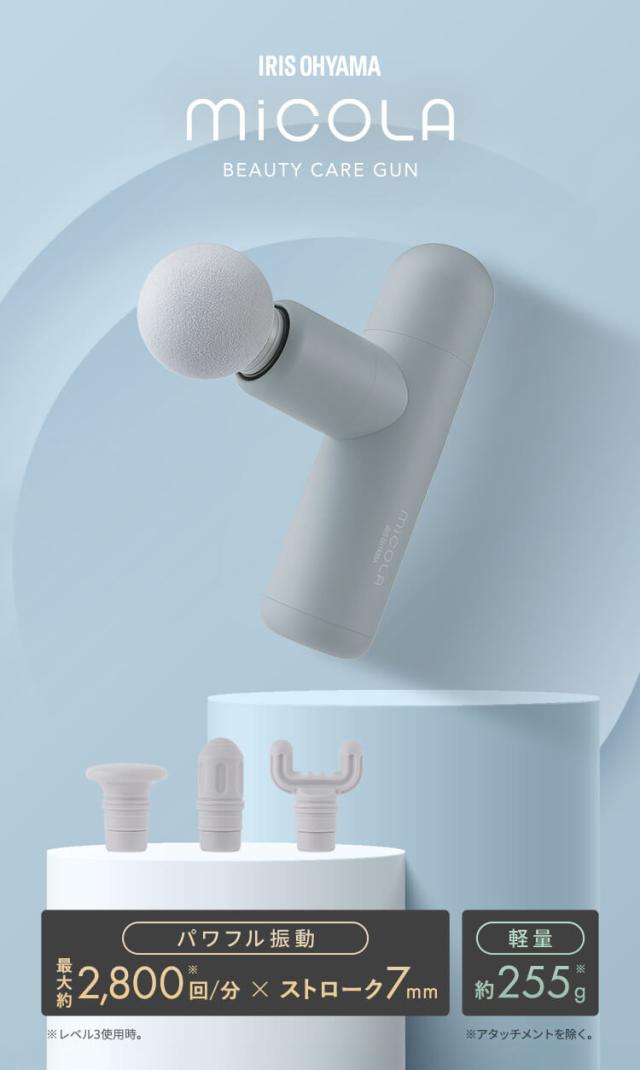 [検索用:ハンディガン 軽量 筋膜リリース リリースガン ビューティーケアガン 小型 コンパクト MiCOLA ミコラ ボディケア 充電式 USB-typeC ポーチ付 グレー ブルー モカ アイリスオーヤマ ]