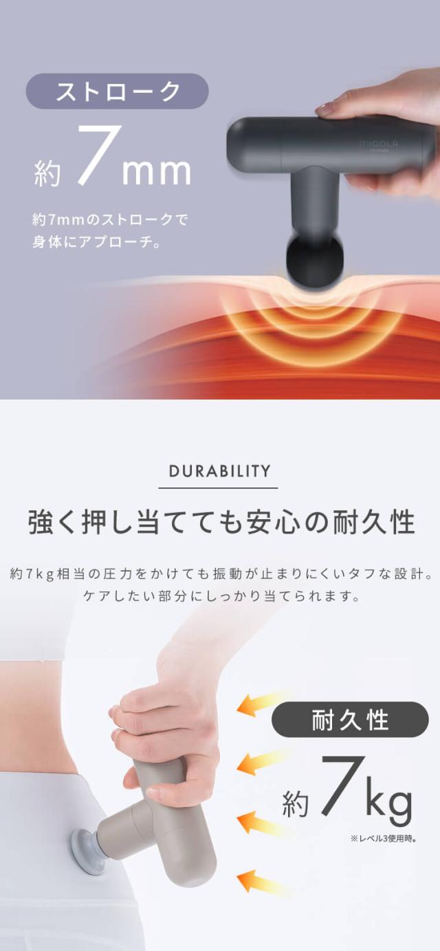 7kg相当の圧力をかけても振動が止まりにくいタフな設計。