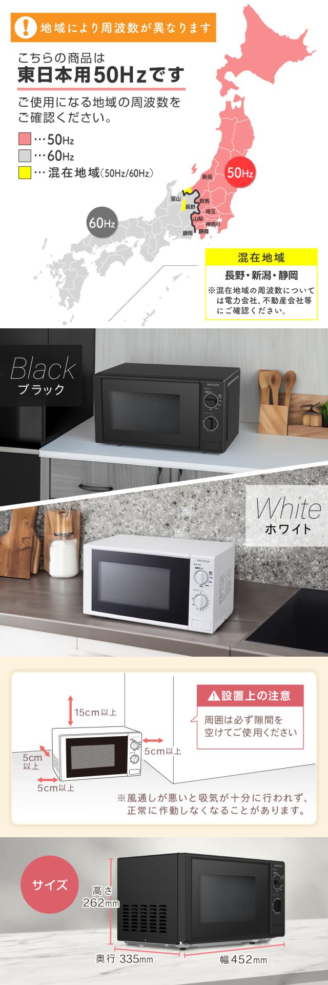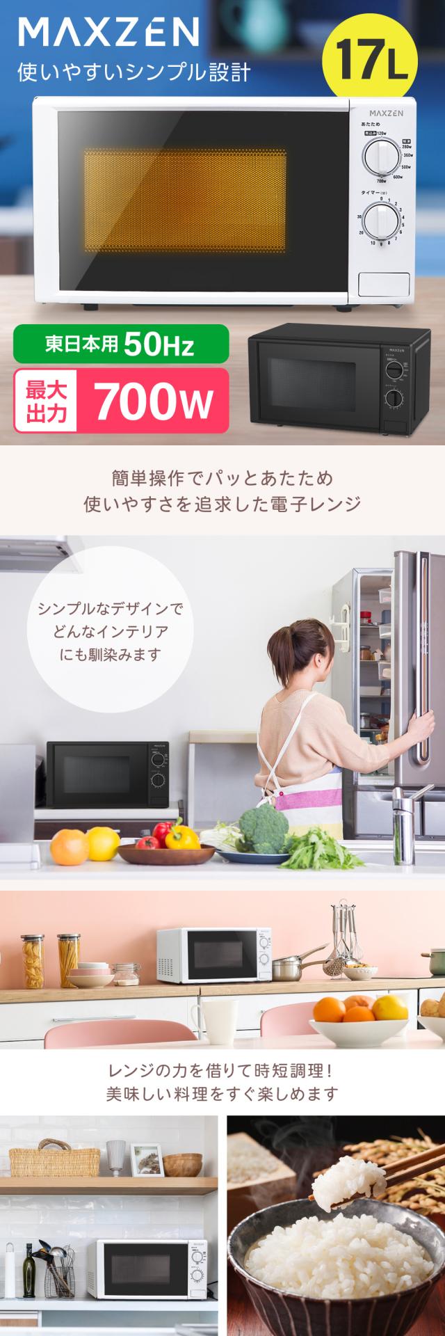 電子レンジ 17L ターンテーブル 東日本専用 一人暮らし 1人暮らし シンプル 単機能 700W プッシュボタン 黒 ブラック JM17AGZ01BK 50hz マクスゼン