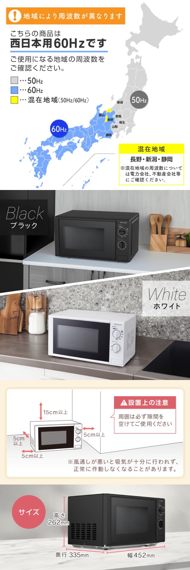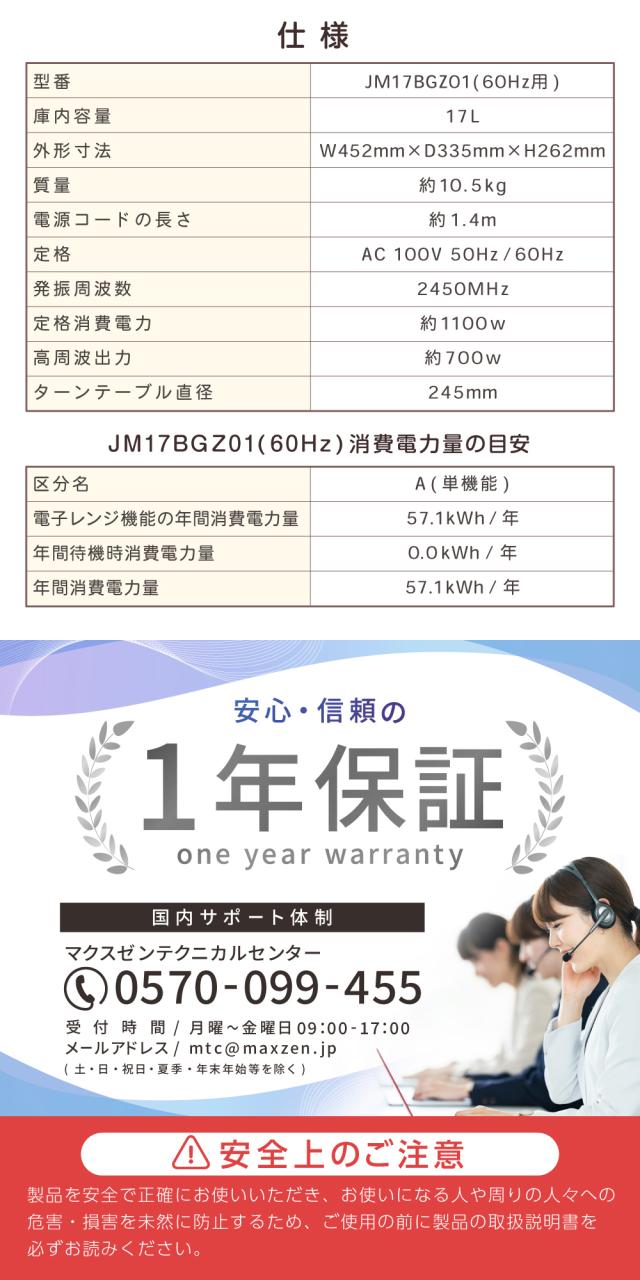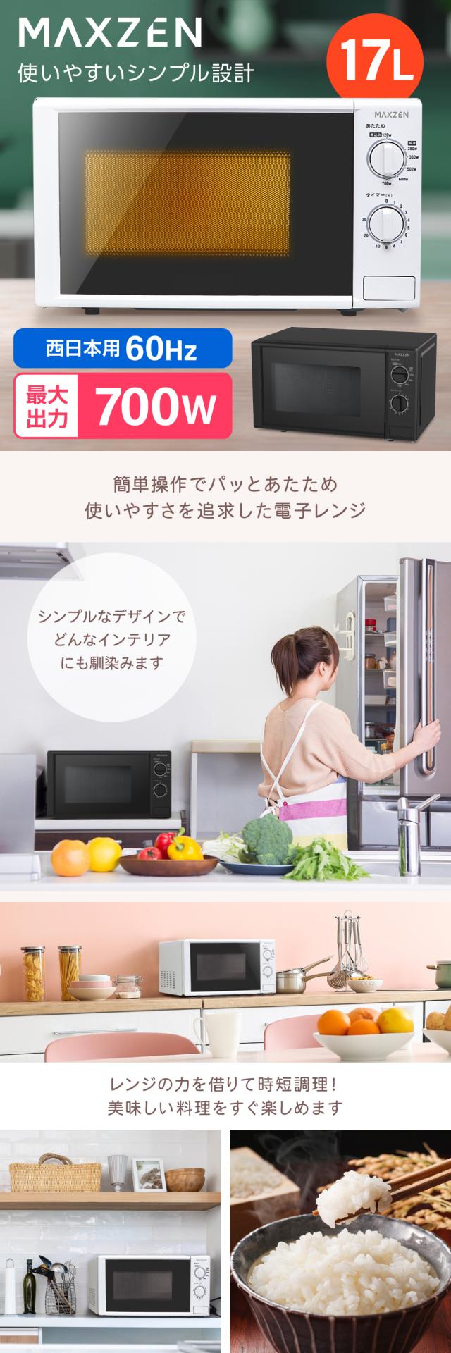 電子レンジ 17L ターンテーブル 西日本専用 一人暮らし 1人暮らし シンプル 単機能 700W プッシュボタン 黒 ブラック JM17BGZ01BK 60hz マクスゼン