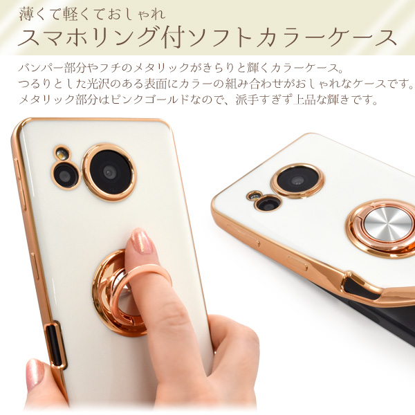 スマホケース AQUOS sense7 plus A208SH スマホリング付 メタリック バンパー ソフトケース 保護ケース 保護カバー 携帯ケース 背面カバー 柔らかい TPU素材 光沢 つや有 くすみカラー かわいい オシャレ