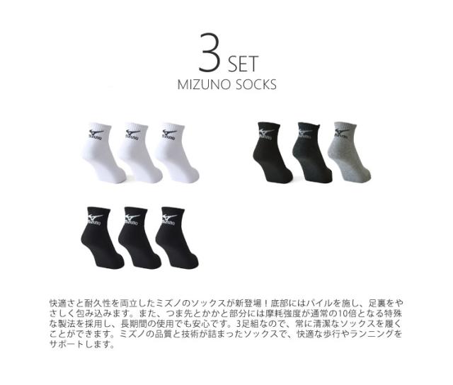 ミズノ MIZUNO ソックス 靴下 底パイル つま先 かかと 摩耗強度10倍 3足組【B3P】【送料無料】【メール便2】【メンズ】 冬新作