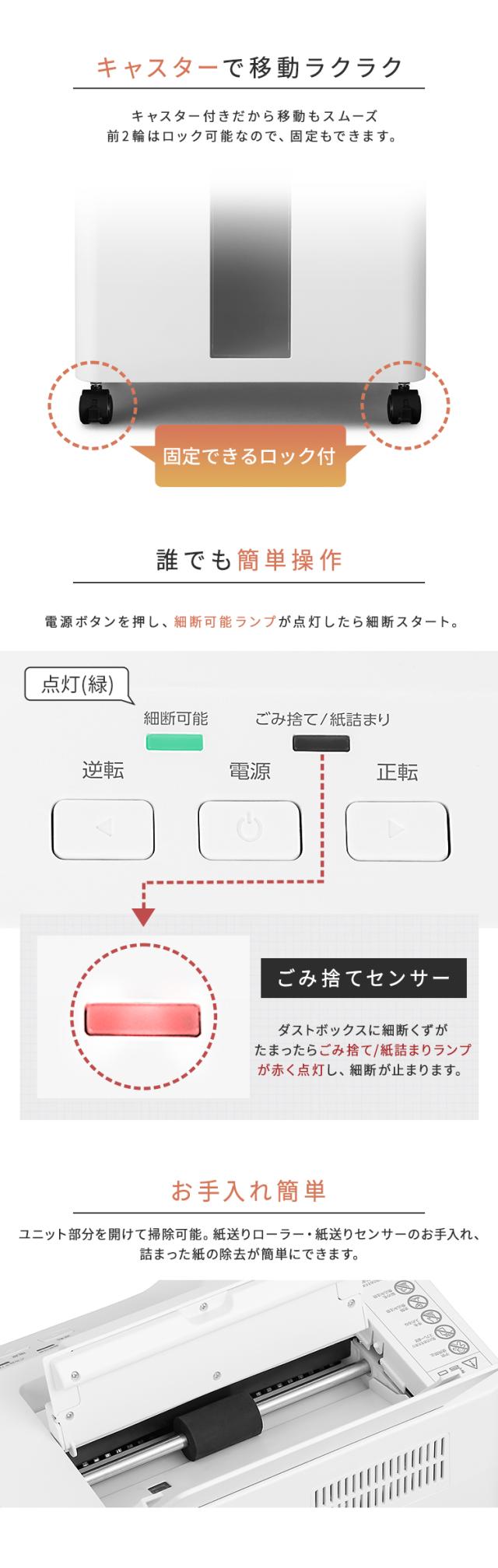 オートフィード(自動給紙)タイプだから、紙をセットするだけで細断してくれます。