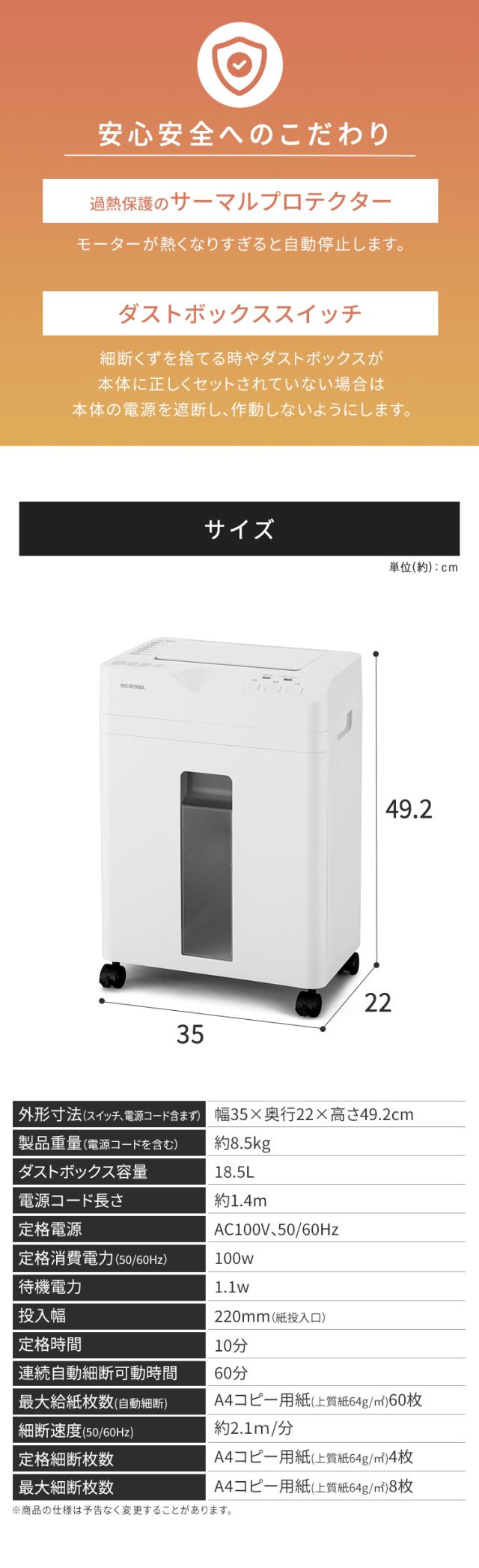 ※2:手差しの場合:同時細断枚数9枚以内/連続使用時間10分。
